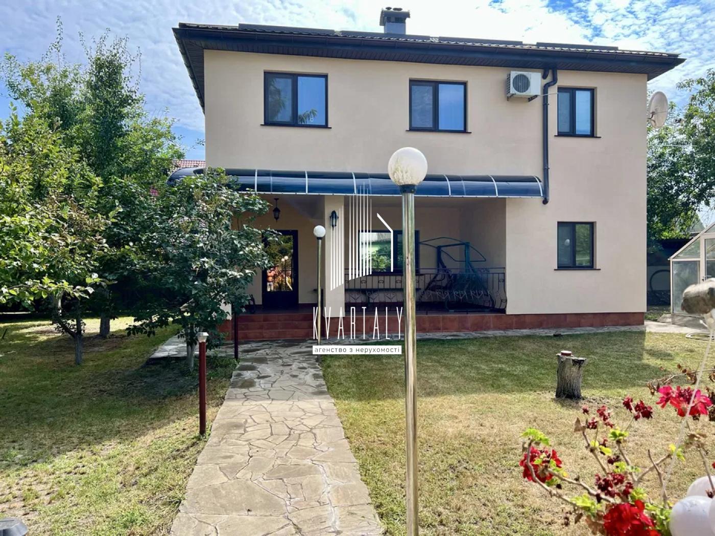 Колодязь з водою до 5 кілець з підготованим вводом для свердловини. Термобудинок (зовні пінополістирол залитий бетоном і армований сталевою арматурою), структурна штукатурка "баранець", пофарбована імпортною акриловою фарбою. Дах - металочерепиця Ruuki, утеплювач, вікна 7-камерний профіль з двокамерним склопакетом, тераса засклена однокамерним склопакетом. Металеві протизламні двері. Відеоспостереження з записом на реєстратор та можливістю перегляду віддалено у реальному часі (зовні та зсередини). Охоронна сигналізація усіх будівель, можливість дистанційного перегляду статусу та постановки/зняття охорони. Подвір'я покрите армованим бетоном із покладеною поверх гранітною пиляною бруківкою. Мурований із граніту фасадний паркан. Розсувні автоматичні ворота, автоматична хвіртка, дзвоник-інтерком із відеомонітором. Гараж із автоматичними воротами на 2 а/машини (позашляховики). Альтанка засклена із розсувними вікнами, діюча помпейська пічка (для піци тощо). Підготоване місце для патіо з місцем для сидіння та вогню. Будинок є енергонезалежний: 46 сонячних панелей, гібридний інвертор 10 кВт (до15 кВт), договір про "зелений тариф", акумулятор, станція геліоколектора для води з бойлером на 200 л, гідростанція для водозабезпечення, система водоочищення. Опалення від газового котла Viessman, газопровод середнього тиску. Можливість підключення електричного та/або твердопалвного котла. Система вентиляції Cooper&Hunter, з рекуперацією, з пультом керування. Вбудована кухня з холодильником, посудомийною машиною, мийкою, витяжкою, індукційною варочною поверхнею, духовою шафою. Столешня кухні/острова/підвіконня з імпортного граніту. Перший поверх обігрівається за рахунок теплого водяного полу, другий - радіатори та електропідігрів санвузла. У будинку є сауна з опаленням дровами (жадеіт, талькохлорит, липа). Камін працює на підігрів майже усього дому. Сходи зі скляними перилами, обладнані автоматично керованою покроковою світлодіодною підсвіткою. Адреса присвоєна, лічильники на світло та газ є, заборгованості по платежам немає. Укладено також договір по зеленому тарифу
