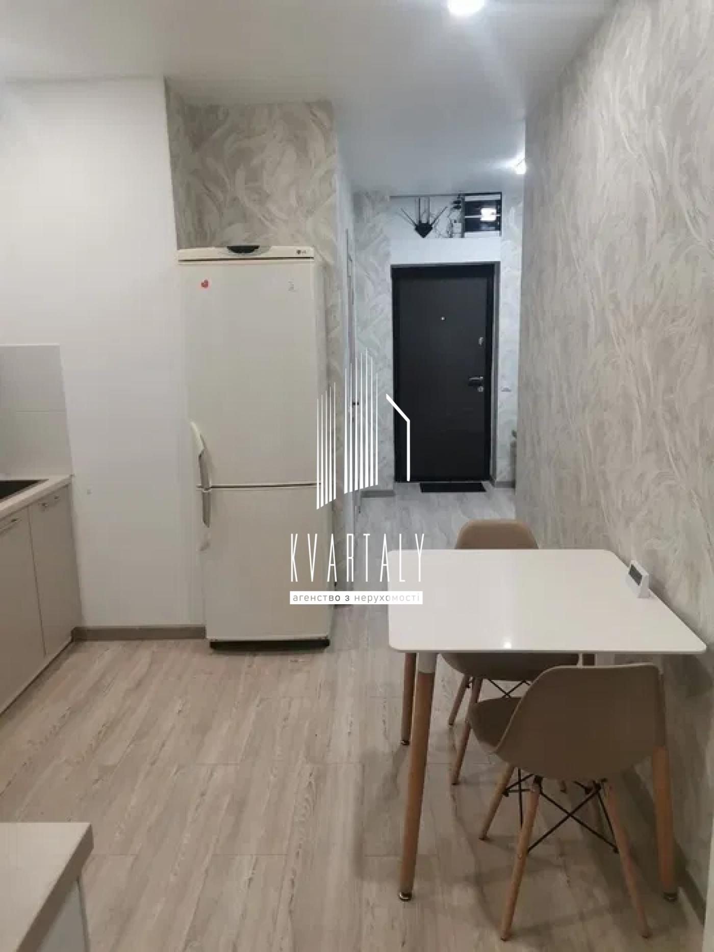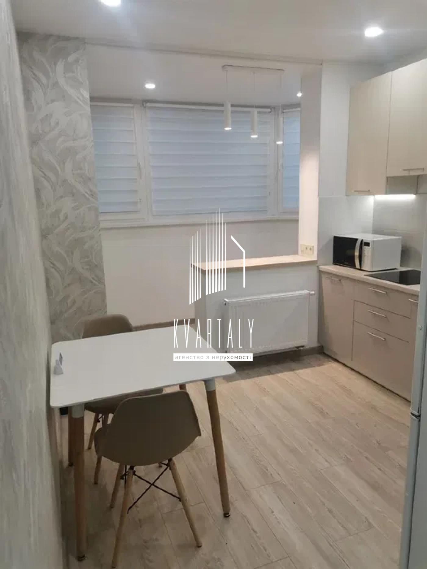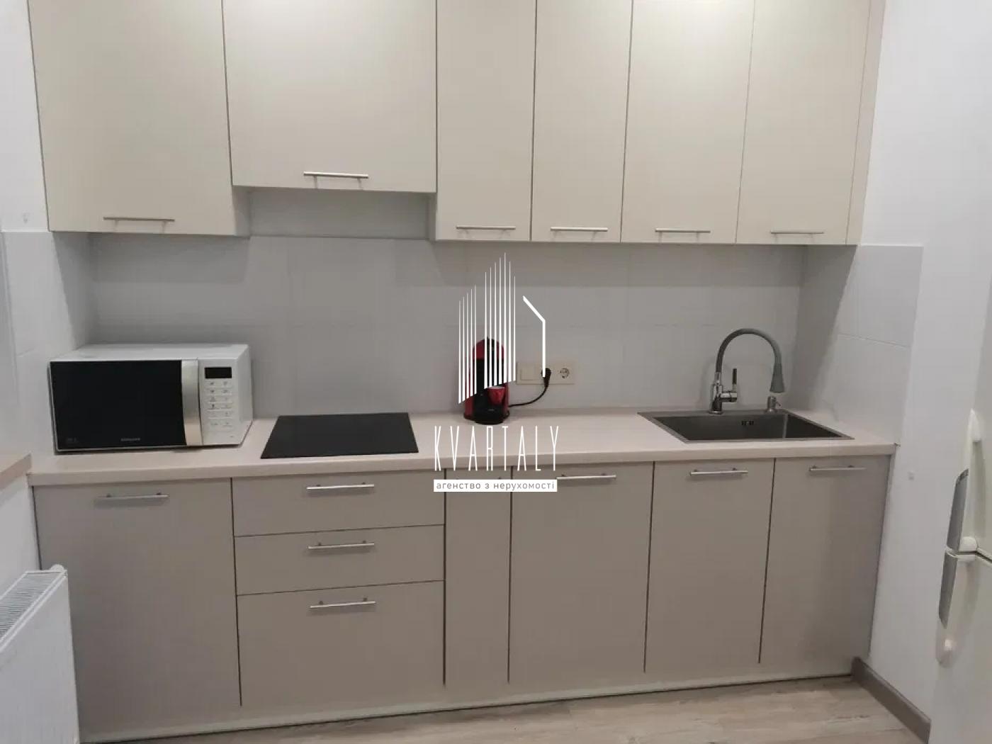 Кухня: індукційна варочна поверхня, холодильник, мікрохвильова піч, капсульна кавомашина, електрочайник. З вікна кухні відкривається красивий вид на правий берег Києва.