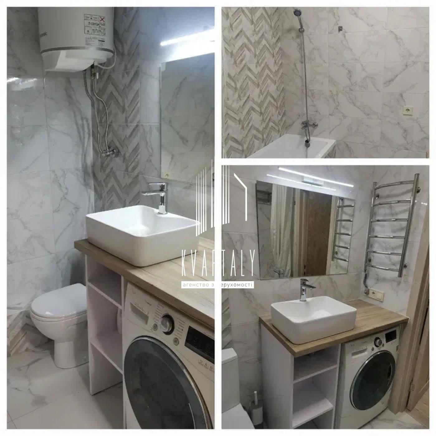 Спільний санвузол (ванна туалет) : підлога з підігрівом, бойлер, пральна машина - автомат, велике дзеркало.