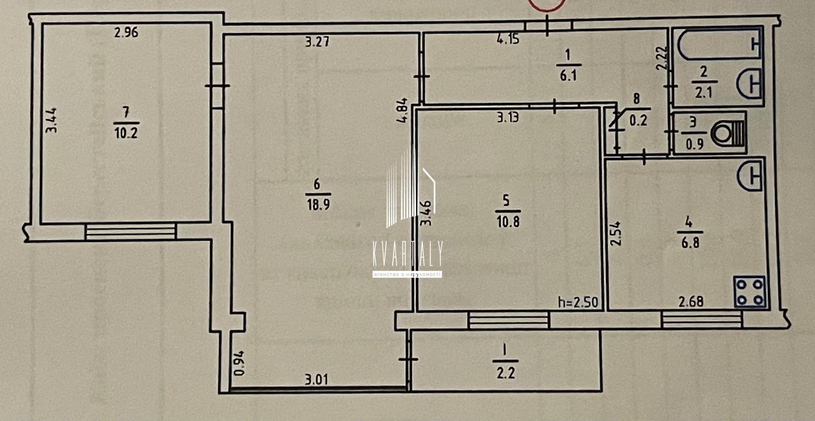 санвузол роздільний.
