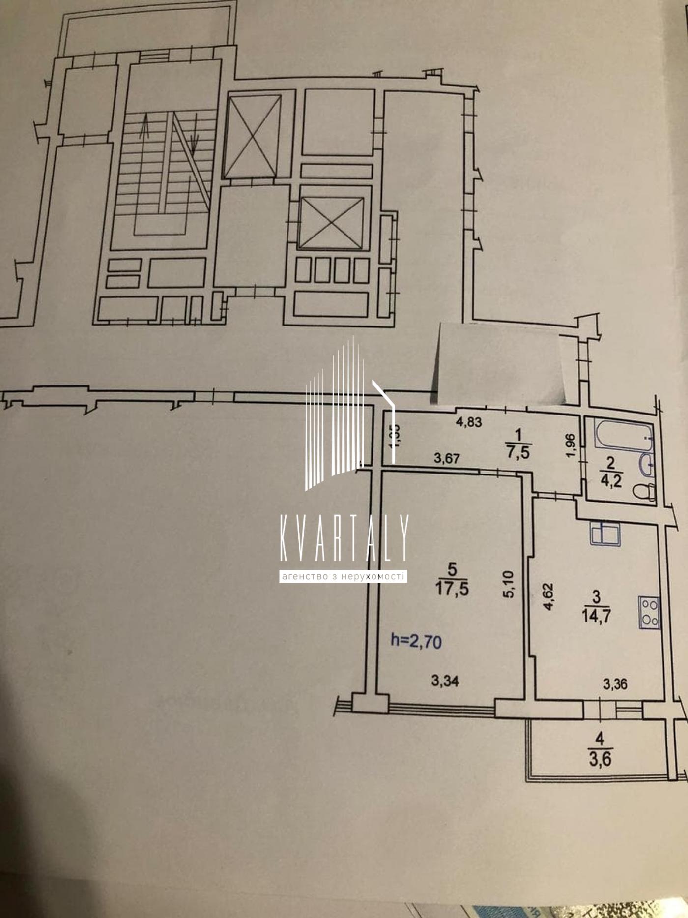 Висота стелі - 3 м. Загальна площа квартири - 47,5 кв.м.